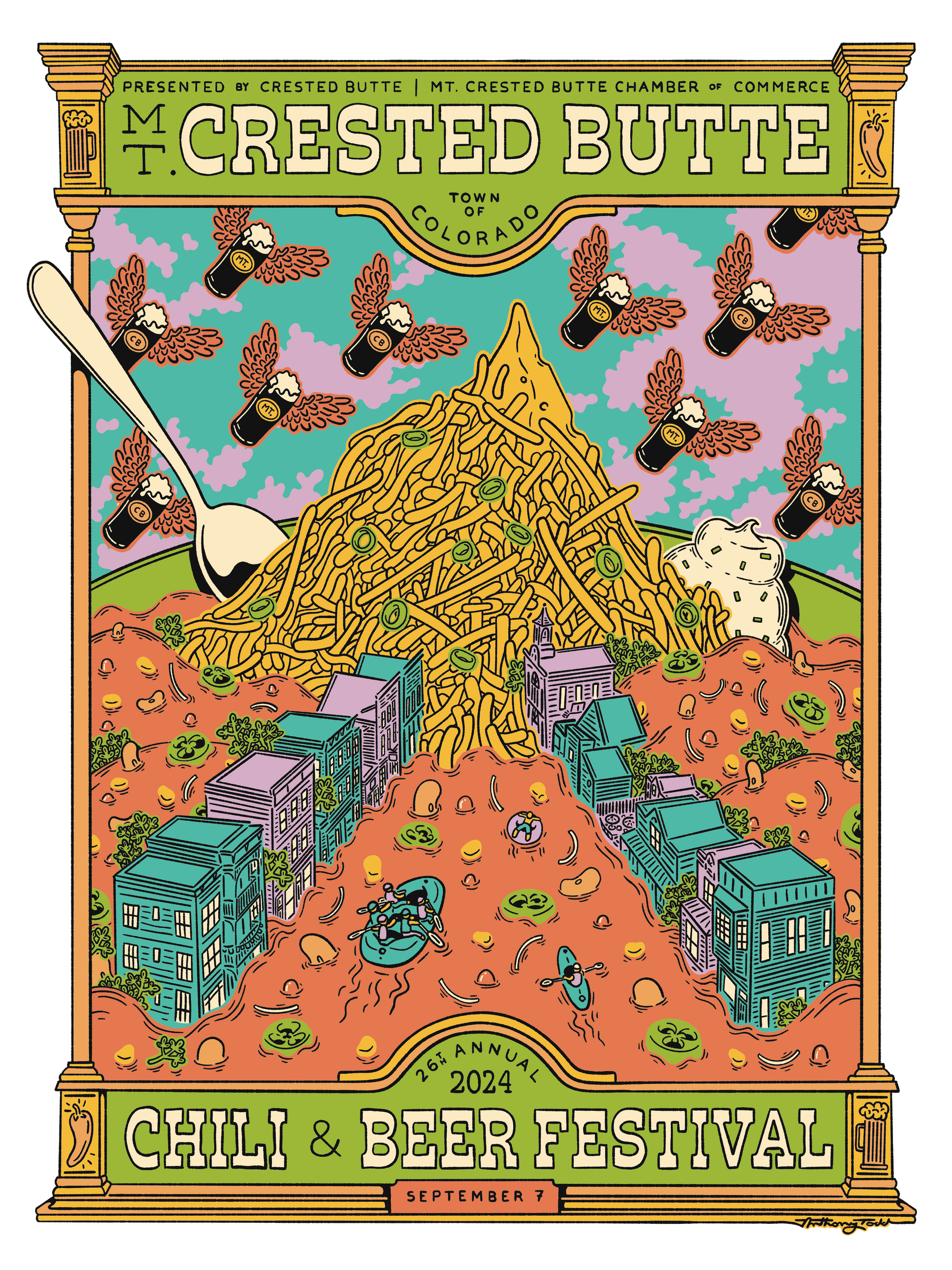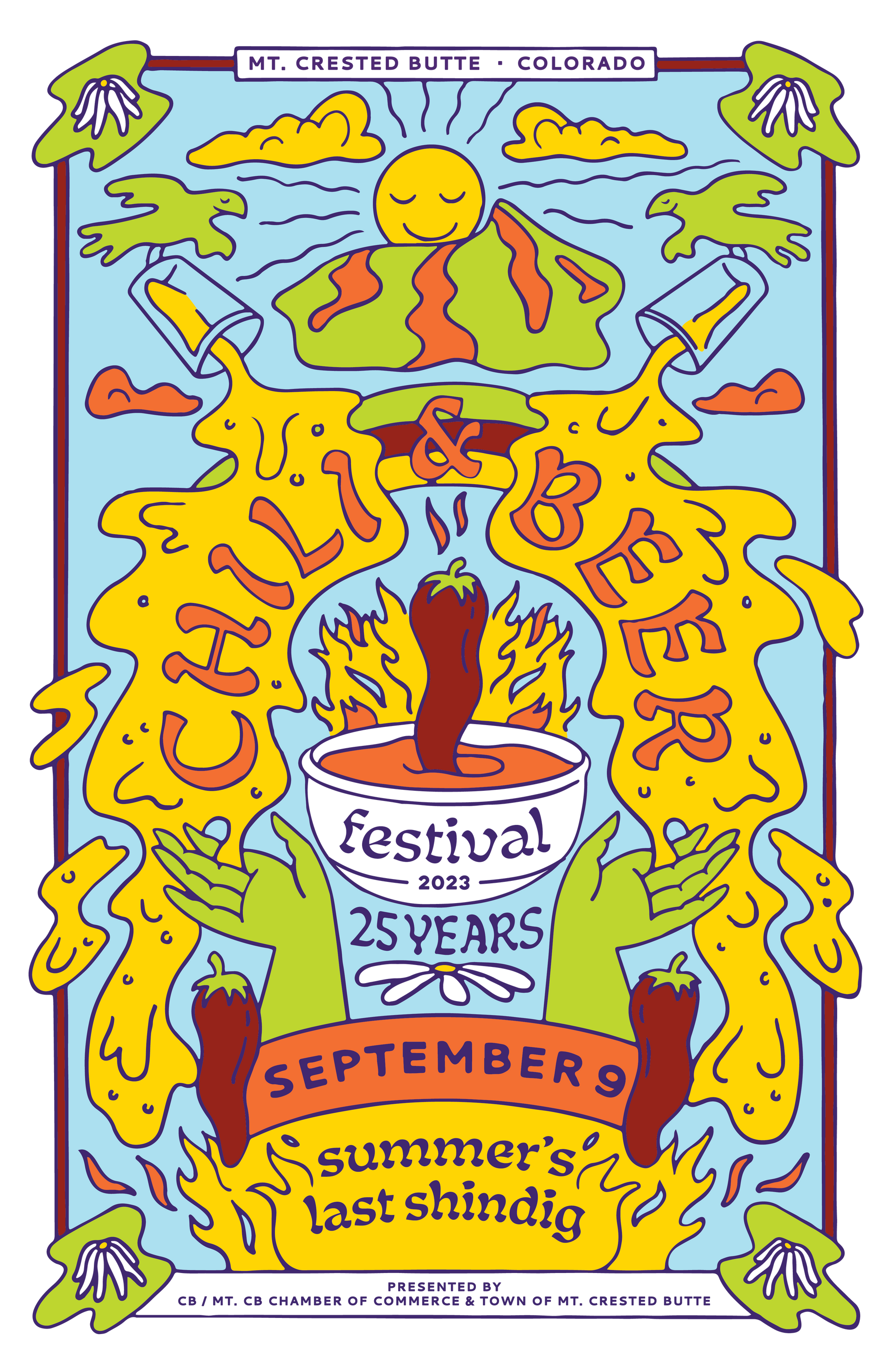 The Mt. Crested Butte Chili and Beer Festival is looking for original artwork for the 28th Annual Festival, taking place September 12, 2026, in the Town of Mt. Crested Butte at the base of Mount Crested Butte.